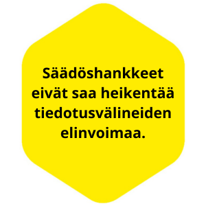 Suomi vaikuttaa siihen, että EU:n säädöshankkeissa arvioidaan vaikutukset media-alaan ja huolehditaan siitä, että sääntely tukee riippumattoman median toimintaedellytyksiä ja reilua kilpailua digitaalisilla markkinoilla. Säädöshankkeet eivät saa heikentää tiedotusvälineiden elinvoimaa.